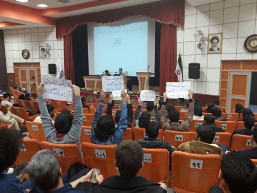 دانشجویان دست نوشته هایی در دست داشتند که بر روی آن نوشته شده بود: